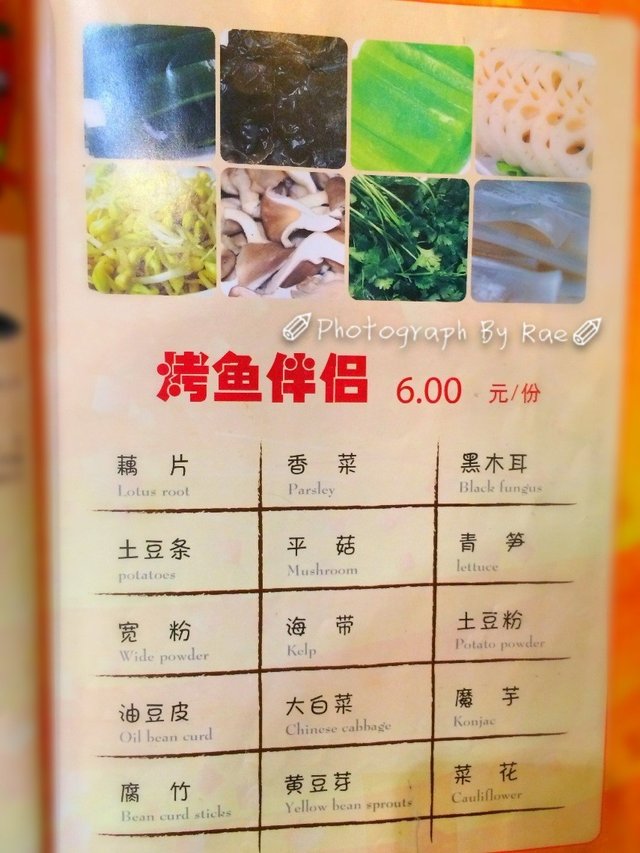 除了烤鱼,另外还可以自选一些配菜