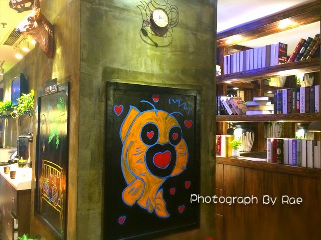 黑板,书架……感觉把活泼的校园生活带进了餐厅