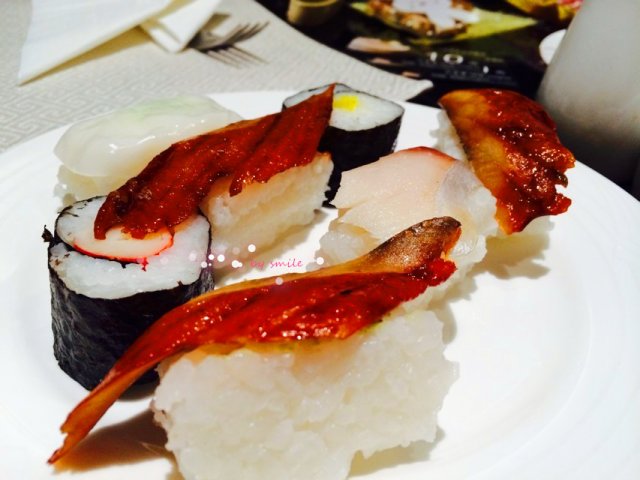 鳗鱼寿司是这一盘里比较好吃的,只是料和醋饭没有握紧,吃起来不太爽。
