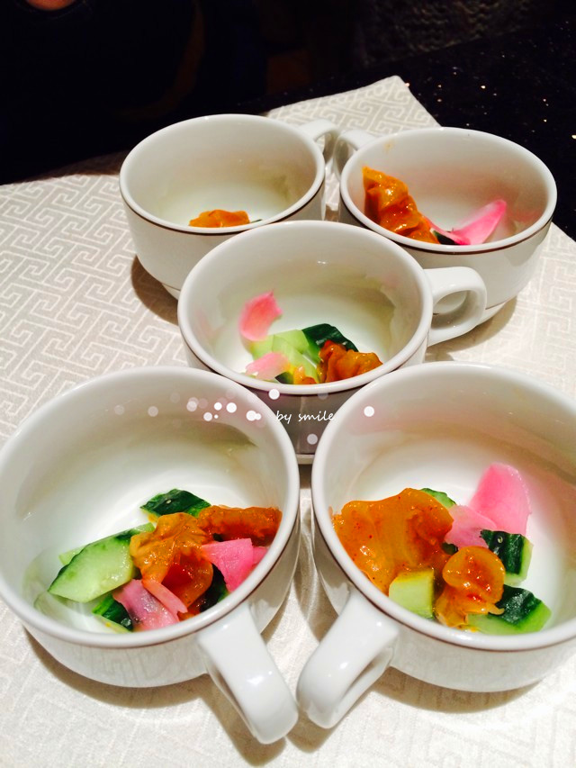 海螺肉虽然有吃出腌制过的,但并不强烈,配菜还有黄瓜和萝卜
