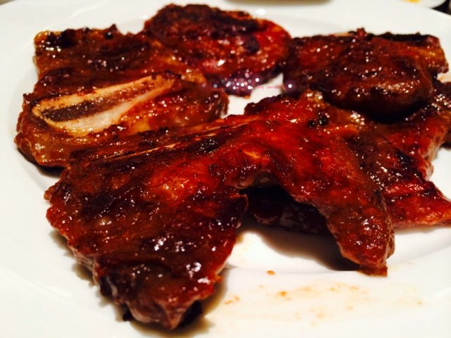 后来又发现,其实是牛仔骨,这可比牛排迷你多了,骨头边的肉是最好吃的,于是我不顾形象啃了起来,烤的刚刚好,如果再多几分钟估计就得老了