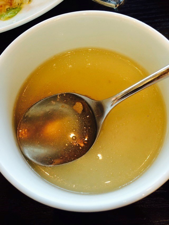 被某人嘲笑来自助喝汤,拉肚子的人真的好可怜好吗。。。海带汤很鲜美,看到这个汤你才会觉得是韩国人开的。。。