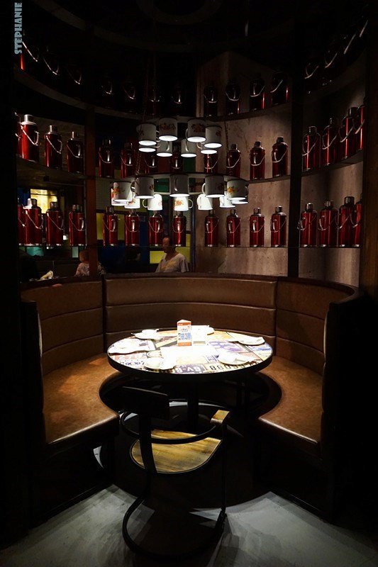 环境有点姥姥家的感觉,有点曲径通幽。搪瓷茶缸灯罩,一面墙的老式电话,自行车,老上海美女装饰画……挺有意思的。