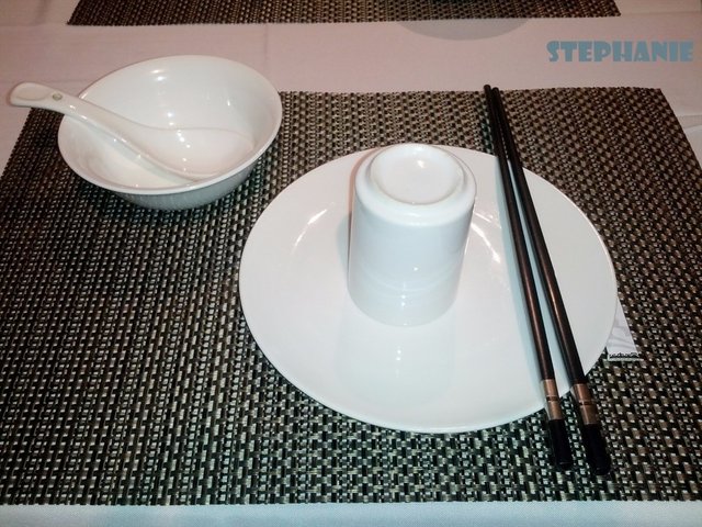 垫餐具的垫子不是纸质的,而是有点像薄薄的竹子制的垫子。蛮有民族风呢。·