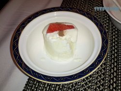 我感觉是酸奶冻起来了。味道不错。但是建议这个作为甜品还是最后上吧。如果不是酷暑,一开始就吃冰很伤胃的,老人牙不好的话,乍冷乍热受不了的。