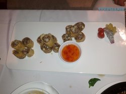 第一次吃六人餐的时候,这道菜是一个个的牛肉条,整整齐齐的码好,卖相漂亮。感觉要是自己家人吃的话还是这次这样的好。那么整齐的牛肉条,感觉像是碎牛肉压制而成。现在图片上这款倒是像牛肉本来的颜色。