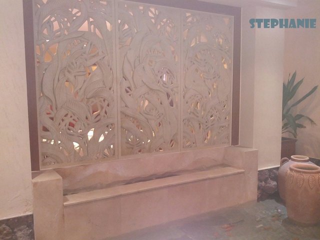 大厅里面的石头屏风,镂空有质感,又不沉闷。