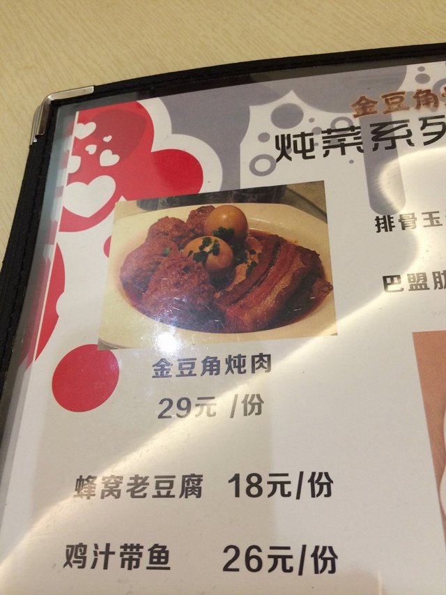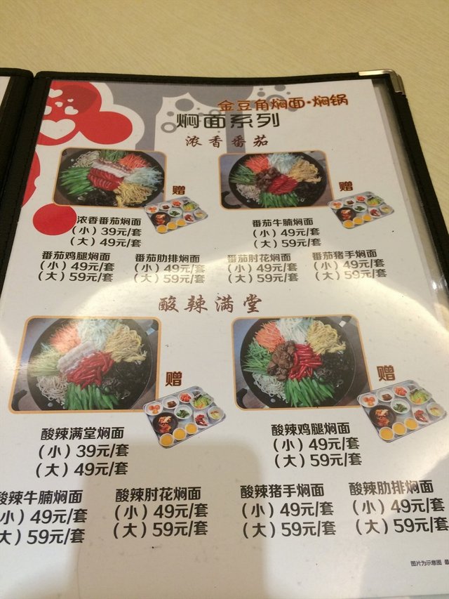 一般般的焖面 joanna333等级32014-09-2621 浏览 关注 安贞这家分店新开不久,有团购,但跟实际价格也没特别大的区别,反正我是没团购啦。 两个人去吃的,本着打包带走的原则,点得有点多,呵呵。具体就看图片吧,菜单,实物都不少。:) 小菜是赠送的,吃着玩玩吧。 还点了两杯饮料和一杯酸奶,都是店里自制的,一般般吧。 总的来说,面条太干了,有点硬,而且上的比较慢。唯一推荐的就是那个碟鱼条,这个是唯一一个当场消灭了的,呵呵。 金豆角炖肉肋骨焖面送的小菜以上食记乃用户个人意见 , 并不代表OpenRice之观点。赞好分享一般般的焖面 金豆角焖面 https://s.openrice.com/KtLT1m0MuuC00检举 张贴 评分3味道3环境3服务3卫生4抵食等候时间25 分钟 (堂食)