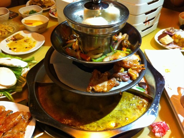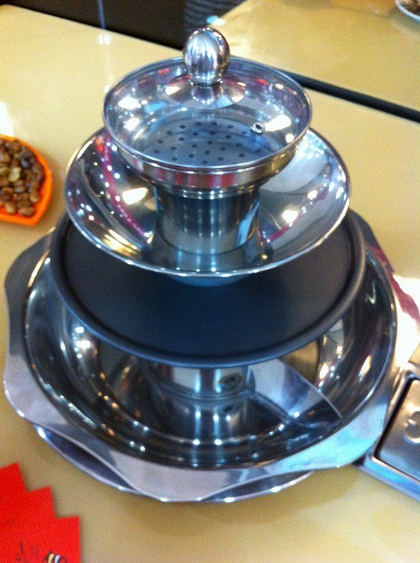 一品布衣最大的特点就是一锅四吃,第一层涮,第二层烤,第三层香锅,第四层蒸,自助的形式想吃什么都可以自取,食材超多,而且还可以选择四种不同的烹调方式,想吃涮羊肉就把羊肉丢进涮锅,吃腻了还可以用第二层烧烤,麻辣香锅里可以吃到香肠,最上面的蒸锅可以吃蒸玉米啊,红薯啊,紫薯!真的好赞!