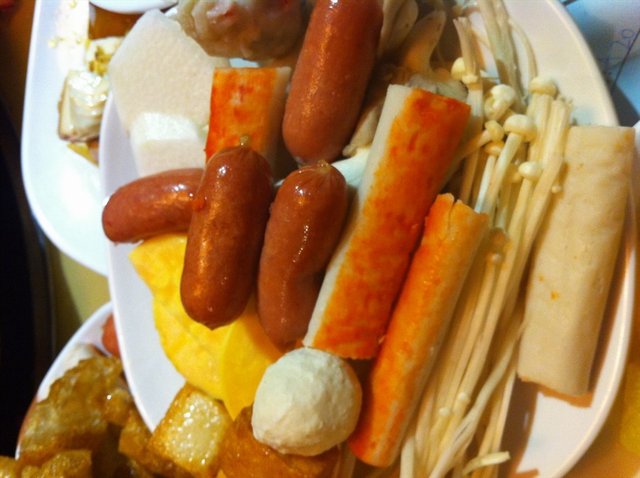 不过四锅通吃的这种设计,只有第一层的火锅火比较大,开的比较快,其他都会慢一点,吃的时候要有耐心哦,食材上还是有很多不错的选择,记得少拿哦,吃完一轮觉得哪个不错再补,不要眼大肚子小哦,一次拿好多那样吃不好还容易浪费!最喜欢小香肠、蟹棒、鱼豆腐,鸡脆骨烤起来吃味道超赞!