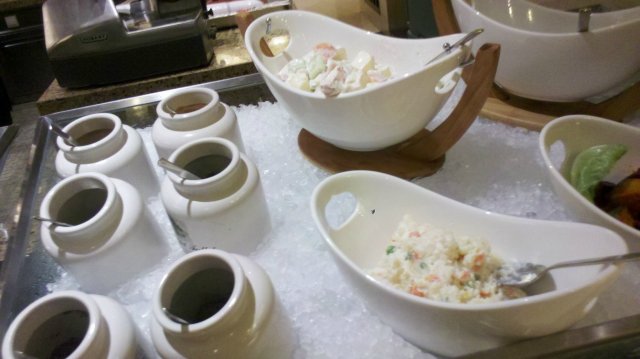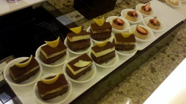 这次隆重要推荐的就是他们家的甜点,不说其他的光甜点的卖相就比一般的自助餐上档次,每一个蛋糕都像是宝贝一般让人舍不得动手,从外观来说绝对能算满分,听说这里的甜品师傅在外面拿过很多奖,而且这里还有外卖甜品,一个小蛋糕也要30元,所以个人感觉喜欢甜品的人光吃甜品就赚回来了。从派到芝士蛋糕再到巧克力,从味道上就能很分明的品尝出用料的讲究,尤其是他们家做的提拉米苏和黑巧克力蛋糕,用的材料估计都是上号的,无论是奶油奶酪还是巧克力酱料上,那个口感真心细腻到让人回味无穷啊。