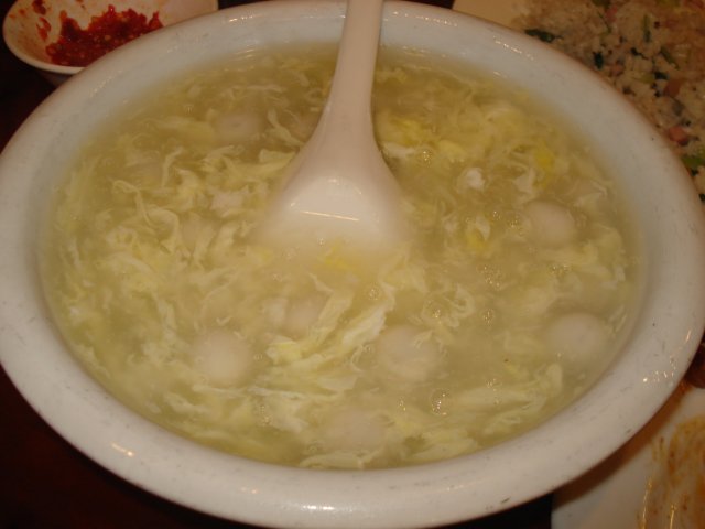 酒酿圆子,这个更受大家欢迎,看来大家还是更爱甜的东东啊,酒酿汤味道刚好,圆子很香糯,不会太甜。