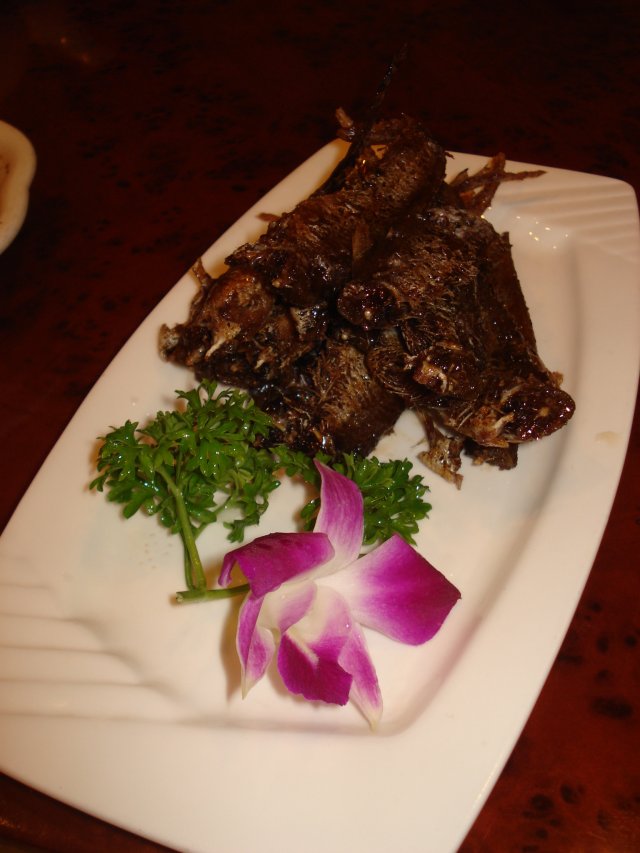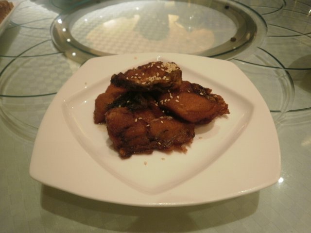 烤子鱼,这个跟上海熏鱼有些雷同,一般吧,个头不大,好像也炸得有些过头。