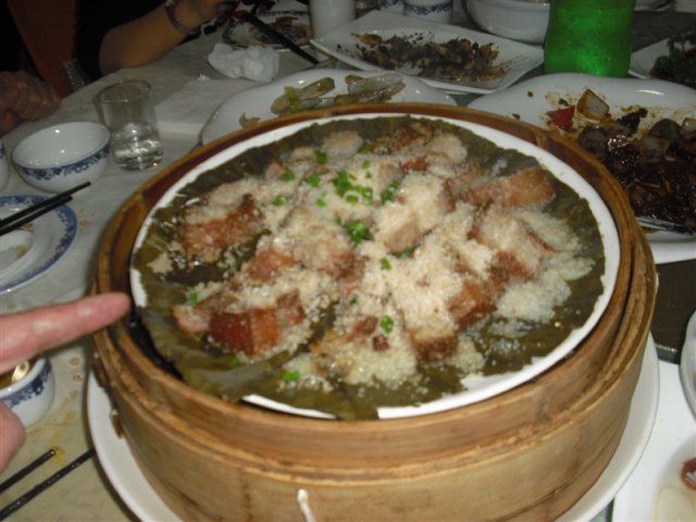 粉蒸肉,蛮大份的,下面荷叶垫着,卖相也不错,肉质香嫩,上面的调料也搭配得正好不会让人感觉和着很多杂七杂八的东西在吃。