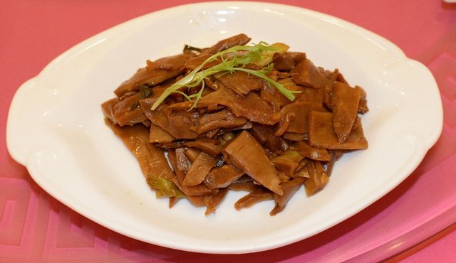 水晶虾仁,虾仁弹牙,个个珠圆玉润的,蘸着醋吃,醋香与虾仁的嫩滑很好的融合在一起。
