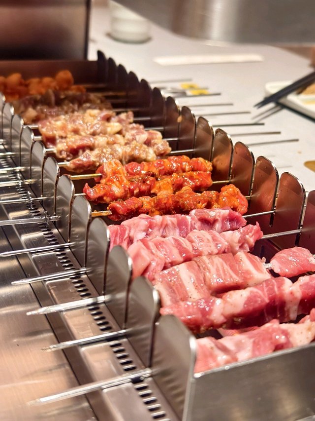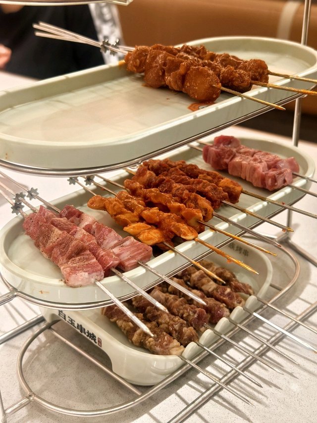 下午茶時段不用排隊 piggy.foodie.daily等级12025-05-02 关注 經歷上次撲空教訓,這次刻意選在下午茶時段造訪,果然避開人潮直入座位。首推韓式蕎麥冷麵,琥珀色湯底配上黃瓜絲,雞蛋絲,梨片提味,蕎麥麵吸飽酸甜汁液,暑氣瞬間消散。 店內「管家式燒烤服務」深得我心,親切店員不僅示範烤串技巧,更貼心調整火候。安格斯牛肋條油花分布均勻,沾上秘製芝麻香料,焦香四溢的肉汁在齒間爆開;雞肉串略顯重鹹。驚喜彩蛋是煎餃子,金黃酥脆的外皮裹著爆汁菜豬肉餡,蘸點醬汁後根本停不下來。 終於明白為何這家店能讓食客甘願排隊。離峰時段來訪還能悠閒享受桌邊服務,絕對是懶人吃韓燒串串的首選地方!以上食记乃用户个人意见 , 并不代表OpenRice之观点。赞好分享下午茶時段不用排隊 白玉串城朝鲜族烤串 (福田卓悦INTOWN购物中心) https://s.openrice.com/KtLT0W08fuG00检举 张贴 评分4味道4环境4服务4卫生4抵食用餐途径堂食