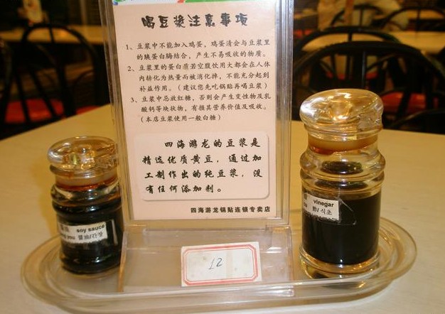 就在小肥羊的楼下。要了一两原味的锅贴,等了好久,原来是还没出锅啊!桌上有酱油和醋。