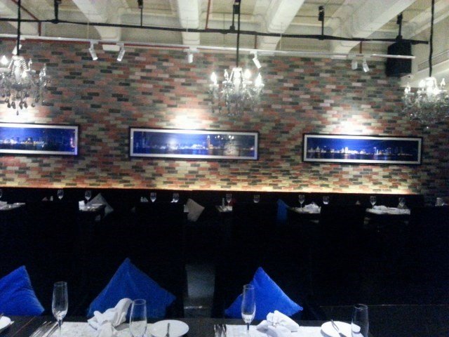 整个餐厅的色调呈昏暗的蓝 最大的亮点就是入口处 一只遨游在水缸里的大海龟