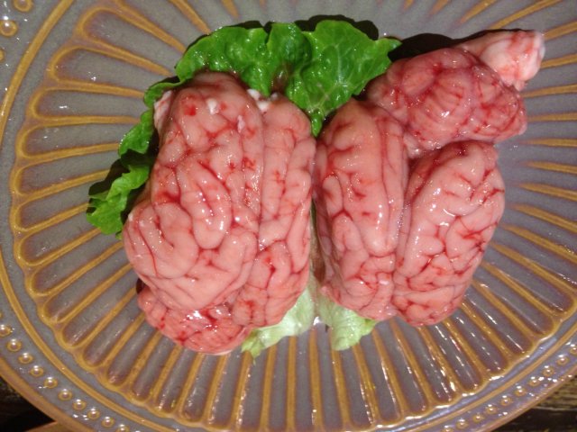 她家的脑花上面的血丝没剔除,要自己挑出来,当然不讲究的也可以忽略这个步骤。脑花久煮而不散,味道也能渗入。值得推荐。