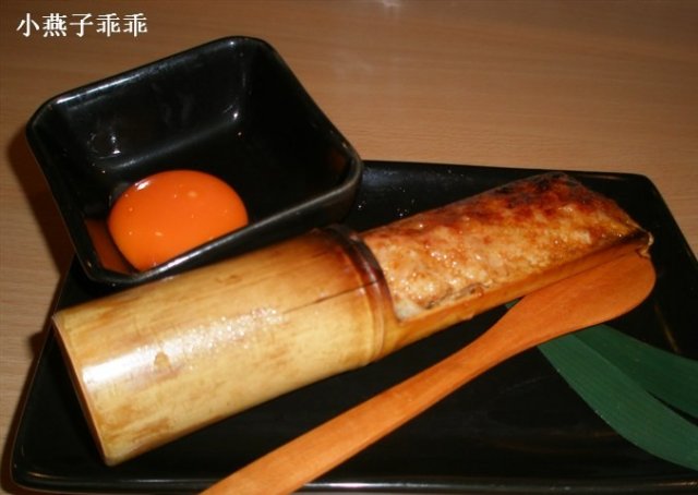 竹筒鸡肉噱头大于实质,沾上鸡蛋吃也很一般般。鸡蛋倒是红心鸡蛋,咱也不指望是日本鸡蛋了,里面其实就是鸡肉肉糜调味然后塞进去的吧应该。