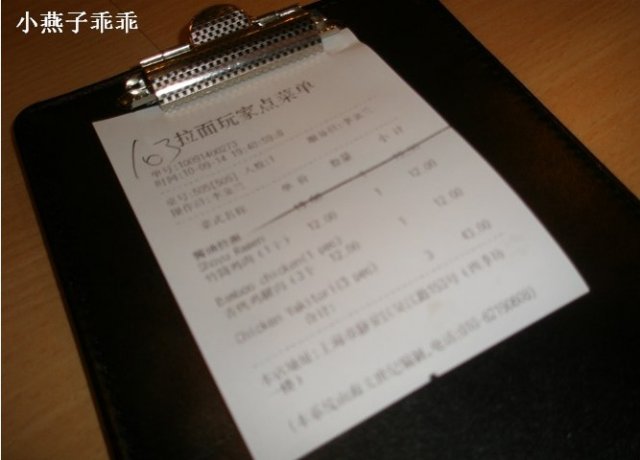 我坐的位子离厨房还是蛮近的,看的出他们虽然不是很忙,但是团队合作还是磨合的不够,所以速度很慢啊!照理来说吧,面条呀,对法!很快的啊!不过出品好像都是经过称重的,其实也不必那么精确是吧!精确的结果是,面到了手里已经不是热乎的了,有点温吞吞的,口感差好多,面条是那种方便面式样的曲曲面,据说是为了更好的吸收汤汁,但大家可以看图啊!汤那么少的,总之失败啊!
