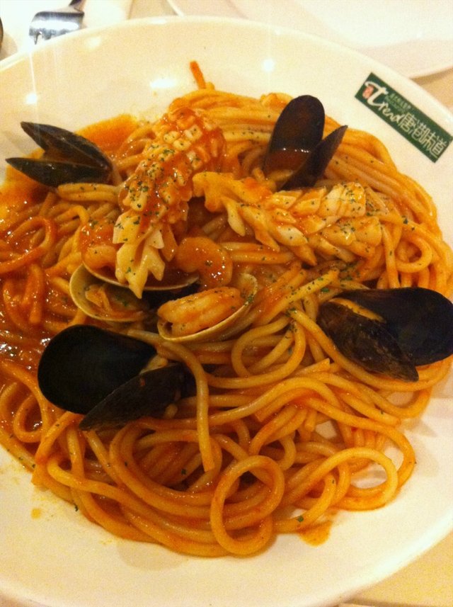 #海鲜意面# 意大利面是我和闺蜜的挚爱,我们俩个人吃一份刚刚好。这个海鲜面很有料,但就是觉得没有那么精致,口味一般,就是觉得没那么精心。