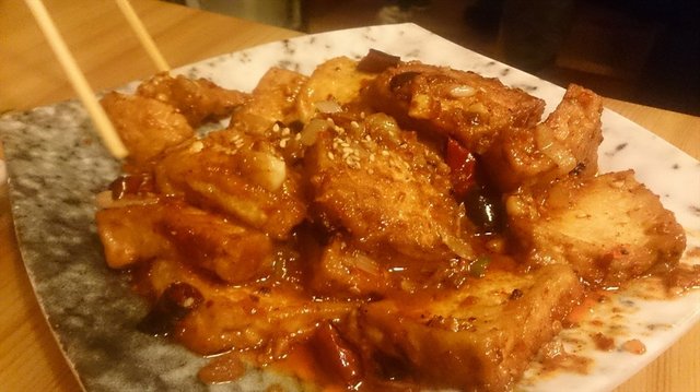 煎豆腐 有点咸 和若琳的 有些不同 酱香味的 不辣 但是颜色还可以