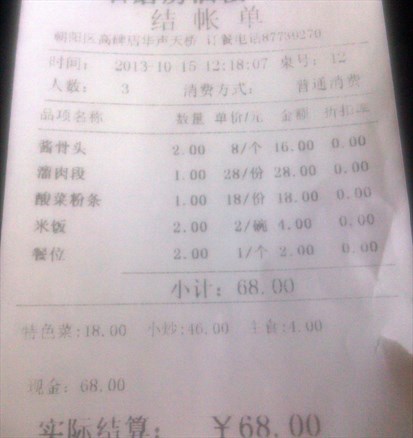 两个人的打包 mrtdhl等级42013-11-024 浏览 关注 眼大肚子小的两个人居然敢在这里点了两个菜外加两个大棒骨 大棒骨一如既往的好吃,肉肉超级多,米饭是大米和玉米碴的混合物,特别有营养,而且米粒很香甜,2块钱一大碗,一个女孩吃不完 酸菜粉丝,很超值啊,里面的酸菜味道特别的正宗,很酸,很脆,粉丝是酸辣粉里面的那种水晶粉,很有嚼劲,里面的肉也很嫩 溜肉段,咸鲜口的,肥而不腻,除了少许的青椒之外,全是肉,真实在 最后的结果就是两个人花了68,打包走了几乎完整的两个菜。以上食记乃用户个人意见 , 并不代表OpenRice之观点。赞好分享两个人的打包 石磨房酒楼 https://s.openrice.com/KtLT1m0uoW800检举 张贴 评分4味道4环境4服务4卫生4抵食