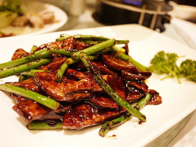 毛蟹年糕、蟹粉豆腐煲、酱爆蒜苔猪肝都是老爸老妈爱吃的,