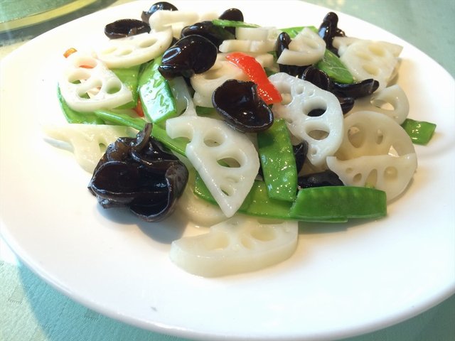 【随意时蔬】38元。没有白果、百合等食材,整体失望。不过不论是鲜脆雪白的藕片、还是两头去尖的荷兰豆,都看得出这里的菜做工精致
