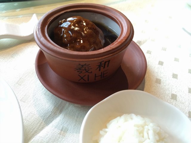 【张氏狮子头】25元/例。敬而远之的狮子头,多年不曾触碰的“横货”,终于在羲和雅苑找到了属于自己的味道~感觉不到是在吃肉,完全颠覆狮子头在我心目中油腻、粗枝大叶的印象,细腻中不失紧致。当一小碗搭配的香米饭拌于肉与汤汁中之时,这道菜的高潮不期而至。这么古老、朴素的吃法,终于再次心甘情愿的体会其中的个把精髓