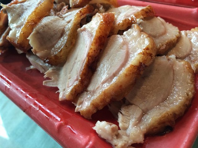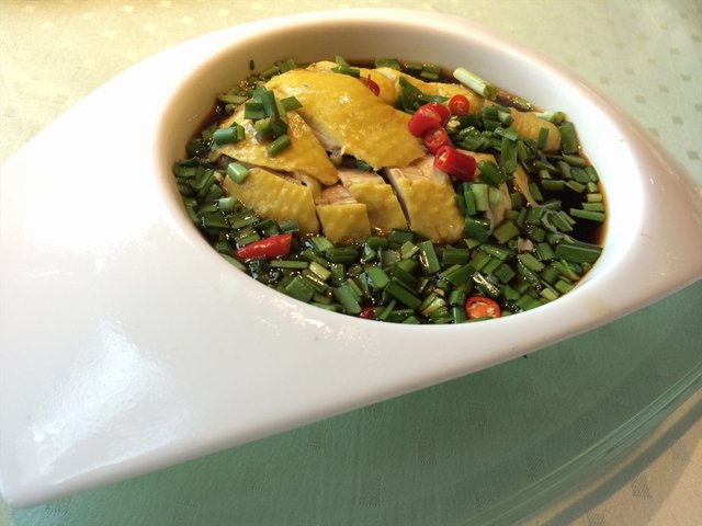 【韭香鸡】42元。原本不报任何期望,鸡肉已然不讨我喜,又被有浓厚刺激味道的韭菜所覆盖。例行公事般尝了一块,点头连连~鸡皮香脆,完全察觉不出皮下脂肪的存在;鸡肉嫩滑,鸡的本味儿与鲜香的汤汁很是契合,韭菜只是增色罢了