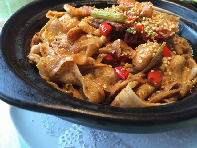 【井冈山豆皮】48元。霍先生慕名而点。好吃,但是讨喜的成分过于明显,豆皮的甜度很高。值得称赞的是,豆皮有些许的气孔,不多,不糟,但足以吸收汤汁,同时带有一定的韧性。