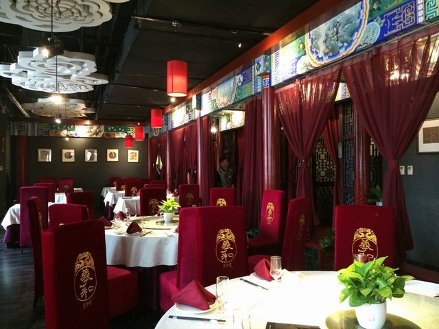 燕莎桥店我们去着最方便,开车三环直趟就到。都汇天地商场3楼,很好找。环境如想象般,古香古色,大气不失韵味儿。我们一共6个人,随便在大厅找了张桌子坐下。唯独不喜欢他家的纱帘,视线的阻隔、磅礴的打破,顿时赋予整体以山寨般的赶脚。服务远配不上“面子工程”,没有报菜名、没有更换骨碟,更别奢望有什么贴心的小举动了。之前他家是不是就餐赠送哈根达斯冰激凌?进门的时候看见有个哈根达斯的小冰柜,可惜直到结账走人也没被理会,我也懒得问。