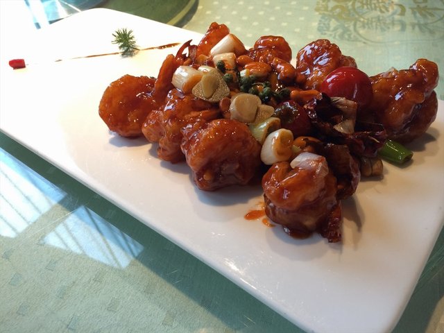 【重庆辣子鸡】58元。公公点名要吃的菜。江浙菜馆点道辣子鸡……哈,没别的意思,公公钦点,必须下单!锅巴不够脆,或者说还可以再脆一些,鸡肉够味,但我更喜欢里面的辣椒,裹面糊、沾染芝麻、炸制酥脆,没有丝毫的呛辣,当做零食一口接着一口,好吃又好玩儿