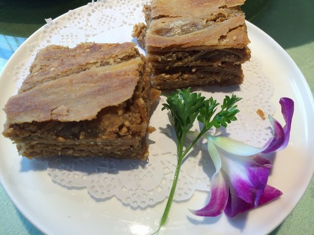 【芝麻香饼】12元。太尼玛美味了!之前吃过的一切哭爹喊娘的好吃麻酱饼都必须拜倒在他家出品之下!脆,但只有表皮薄如纸张般的一层酥脆;软,厚实的面饼充分突出了烫面软糯的美妙口感;香,麻酱的狠直抒胸臆,却又能做到香得不糊嘴、不腻口。再加上12元的价格,性价比爆表!