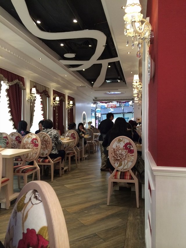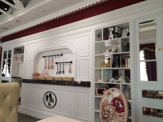店铺还是很好找的,而且特别的装修风格一下子就可以认得出来。店内的装修很浪漫很温馨,红色的波点窗帘,大花的座椅,米白色的餐桌,搭配起来很协调,就是一个完美的主题餐厅。