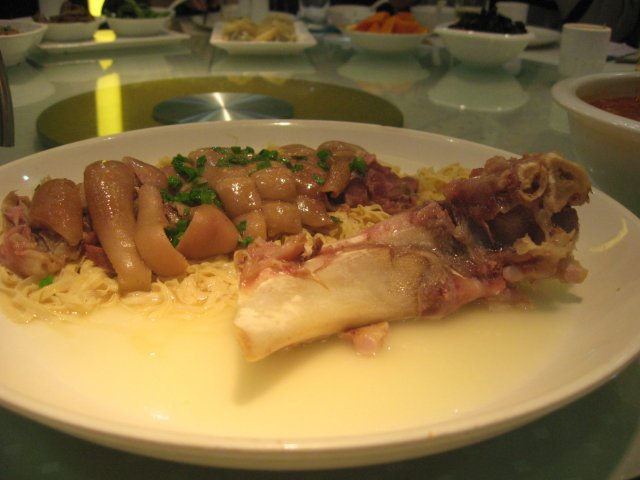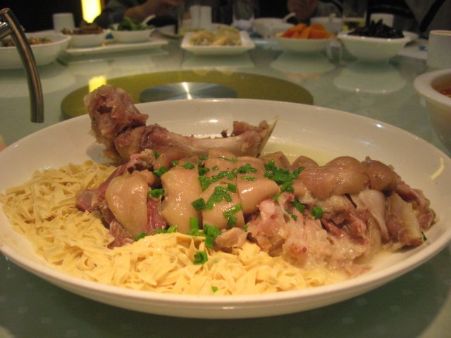 德国咸猪手,干嘛要冠上德国这名呢,中国菜式明明也有咸猪脚这道菜的么,而且咸猪脚下面铺了层百叶,德国的猪手下面怎么会放百叶呢,汗。不过这道菜,味道很好的,咸咸鲜鲜的肉,很灵啊,下面的百叶吸收了肉食的鲜味,特别好吃。