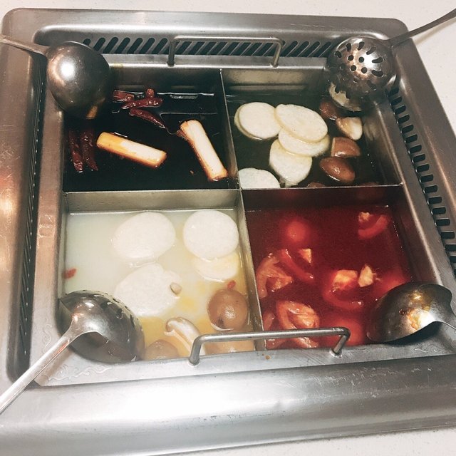 湯底我地點咗清油麻辣、三鮮、蕃茄同菌湯。推薦蕃茄湯底超級香濃,夠酸!麻辣要求了小辣,麻而不太辣,刺激味蕾但唔會食到標眼水。菌湯比較清淡,有菇菌香,適合煮蔬菜。三鮮有啲似菌湯,味道再濃少少,好似豬骨湯底。