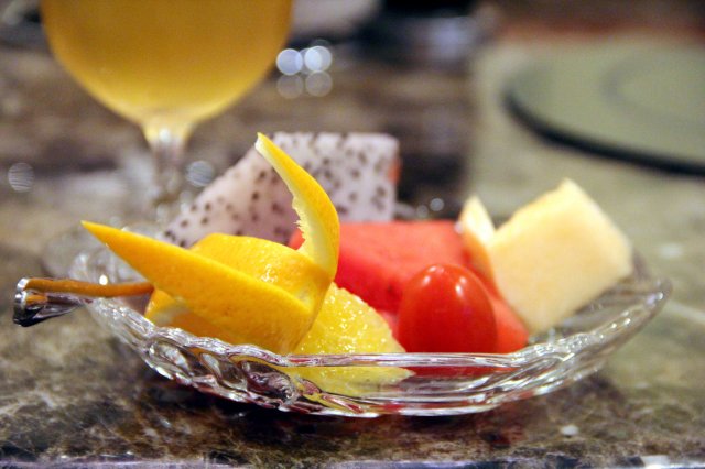 一进门马上送上餐前水果,饮料要了自制的竹蔗芦苇汁,感觉十分爽口,模样也惹人喜爱。