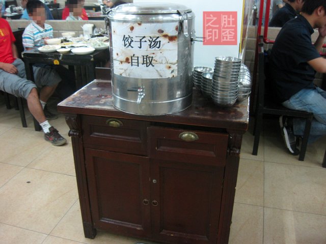 点了碗棒渣粥,1元钱,真便宜呀真便宜~ 吃了饺子锅贴噎得慌才想起来粥没上,一问说卖光了,琢磨着来点什么稀的喝呢就瞅见这大桶了,饺子汤不限量自取,还免费,嘿,这管子来着了!