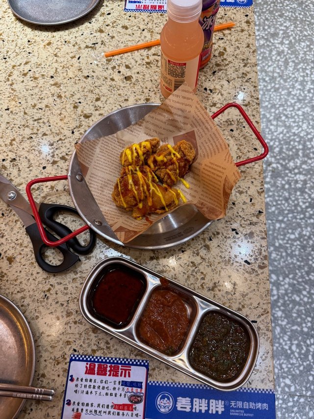 🫶🏻提供炸雞同年糕等任食小食,年糕口感彈牙,帶有微微的辣味,炸雞就不過不失🤓