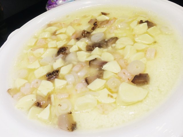 海鲜滑蛋豆腐,28米。虾仁、鱿鱼、海参、虾仁配蛋羹的节奏,非常清淡,软滑,菜量够大,感觉6个人分食都米有问题,比较适合老人和小盆友食用。