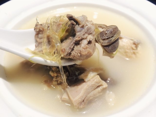 猪肚鸡煲翅,12米一位。因为想暖暖胃口点的一道汤品,没想到味道超好的说。猪肚、鸡块和鱼翅的搭配,非常鲜美的味道,汤底白色没有任何脏器的味道,很赞。
