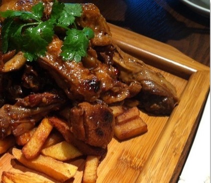 这个算是一道大菜了,木板一样的盘子还是比较有点想法。