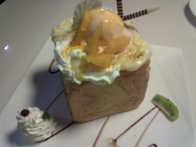 还点了搞活动的蜂蜜厚多士,很多家港式和台式餐厅都有这个菜,吐司的外皮有点硬,冰淇淋的味道不错,奶油有点稀了。