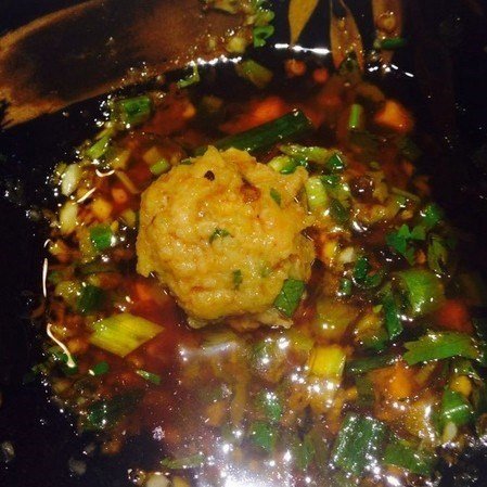 香菜丸子,是自己揉的,端上来一看就知道没冻过,香菜香、姜香融为一体,继续吃肉吧