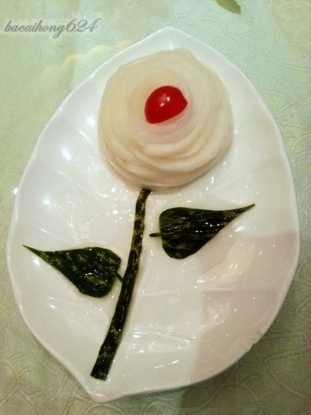 摆盘非常讲究,让人不忍下箸,经过腌制的萝卜,既很好的去除了臭萝卜味,又增添了酸甜的味道,清真菜里面难得的清脆爽口的---素菜