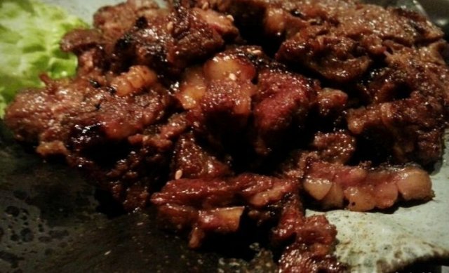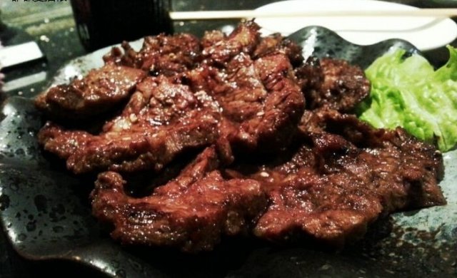 请人吃饭,找到了传说中正宗的日本店——大志烧肉,连日本人都经常去光顾。开始被周围人评价的价格止步,又问了去过的人,称二百块钱八块肉,我就在想要不要换一家,结果在听到“不用你请”这四个字后淡然步入小店,门脸很小,店铺也很小,座位之间距离也很小,可以用精致来形容,价格木有网上说的那么贵,人均消费一百五左右吧,牛肋不错,肉质口感很好,应该是用秘制的调料搭配而成,稍微有甜的口感;另一份牛眼就不敢恭维了,嚼不烂啊,累的我的腮帮子好疼……剩下的菜品没有啥特别之处,很普通,豆腐汤口感偏淡,没有什么滋味,里面也就三块豆腐吧!蛋包饭四十多一份,跟普通二十块钱的味道一样,不太合算,所以,来这还是吃肉吧,其他的不推荐