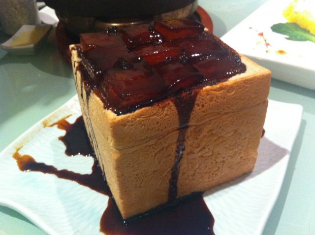 红烧肉厚多士:招牌必点,超赞的,一上台就惊艳全桌了,太诱人了有木有,红烧肉肥而不腻,稍甜的口感正是我喜欢的,汁水醮过的面包很是入味和好吃,而且外面的面包是荞麦做的,很健康。